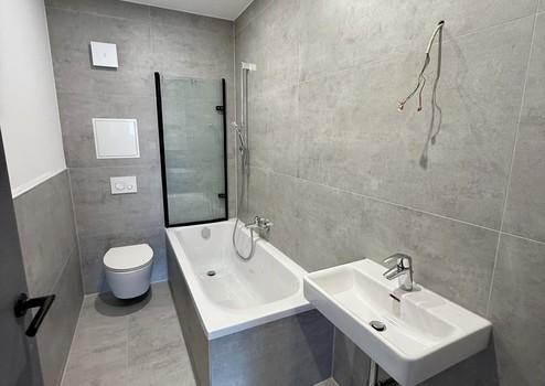 • Exklusives Wohlfühlbad: ausgestattet mit einer komfortablen Badewanne mit eleganten großformatigen Fliesen, stilvolle Design-Armaturen und edle Sanitärmöbel – hier entsteht Ihr ganz persönlicher Wellnessbereich.