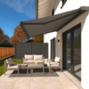 - Außenbereich: Keramikplatten (grau, übergroß), 2 m Naturedelhecke, 1,20 m Zaun