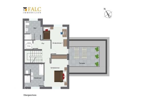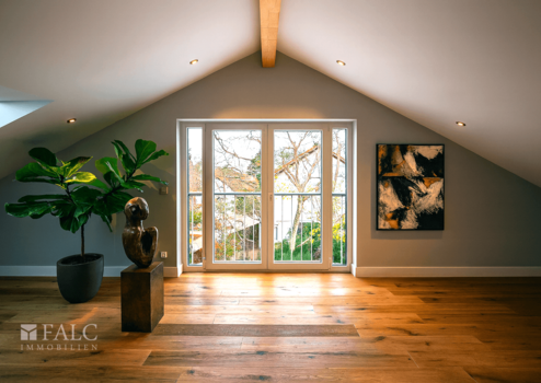 Im Obergeschoss befinden sich 2 Schlafzimmer mit Zugang zu einer ca. 18 m² großen, uneinsehbaren Dachterrasse und zwei hochwertig ausgestatteten Vollbädern. Das ausgebaute Dachgeschoss bietet weiteren Wohnraum – ideal als Home-Office oder Kinderzimmer. Im Untergeschoss befindet sich ein helles Gästezimmer mit Tageslicht und eigenem Bad – perfekt für Besucher, ein Au-pair oder eine Pflegekraft.