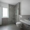 Die Bäder sind modern gestaltet mit bodentiefer Regendusche, großformatigen Fliesen aus Feinsteinzeug und Markeneinbauten.