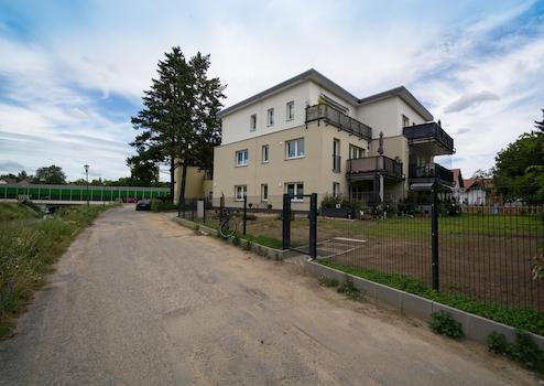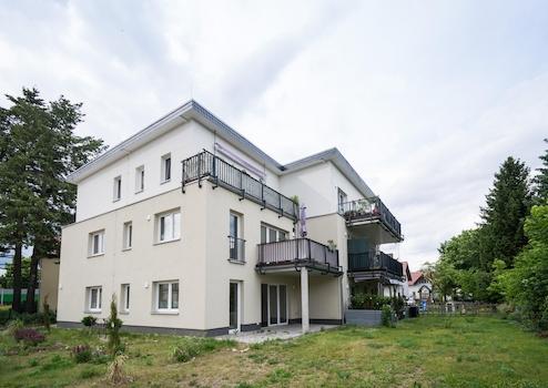 Neubau-Mehrfamilienhaus mit neun Mietwohnungen mit schwellenlosem Zugang und Aufzug, fertiggestellt 2023.