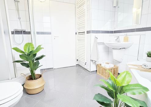 Das Badezimmer ist zeitlos in weiß gehalten und mit seiner tollen Geräumigkeit sowohl mit Dusche, Badewanne und Handtuchheizung modern und bequem zu nutzen.