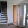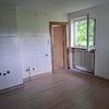 Der Eingangsbereich ist hell. Auf der linken Seite befindet sich ein Duschbad mit WC, rechts eine Wohnküche mit anschließendem Wohnraum. Von der Küche aus führt eine Treppe in den Keller, der auch den Zugang zum Garten bietet.
