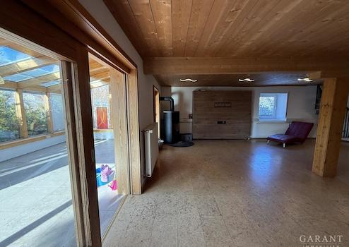 Diese Scheune wurde später vollständig (EG und OG) ausgebaut, hinzu kamen 1998 ein Wintergarten sowie ein Foyer mit Galerie, das beide Stockwerke über eine Treppe erschließt. Entstanden ist dadurch ein Domizil mit, hier darf man das jetzt wirklich mal sagen: fast allen Möglichkeiten.