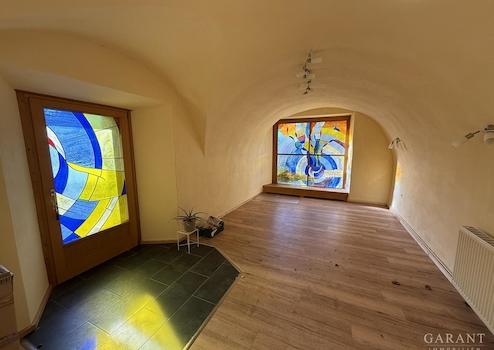 Zuletzt als Einfamilienhaus genutzt, leistete es auch schon für einen Freiberufler gute Dienste, der die großen Räume als Bibliothek und Seminarraum nutzte. Eben dieser Seminarraum befand sich in einem besonderen Schmuckstück des Hauses: Ein Kreuzgewölbe und bunten Bleiglasfenstern.