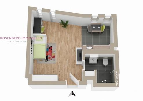 Mit einer Wohnfläche von ca. 27 m² ist diese Wohnung ideal für Singles oder junge Paare. Sie umfasst ein gemütliches Schlafzimmer und ein modernes Badezimmer, die ein behagliches Wohngefühl vermitteln. Dank der modernen Einrichtung und der hellen Räume genießen Sie ein angenehmes Wohnambiente.