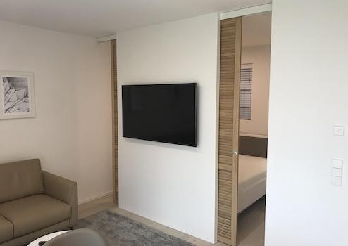 - TV 55 Zoll im Wohnzimmer, TV 43 Zoll im