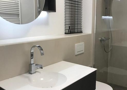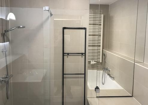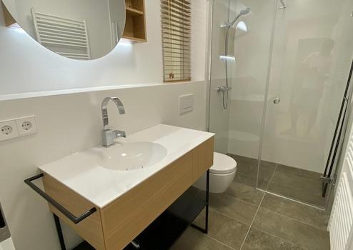 - Boden im Bad aus Feinsteinzeug