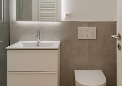 Frisch saniertes Bad mit begehbarer Regendusche.