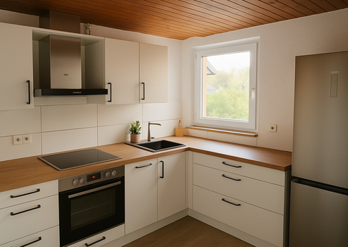 •Vollständig ausgestattete Einbauküche (inkl. Elektrogeräte, Geschirr und Küchenutensilien)