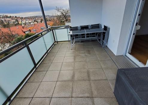 Die Wohnung hat einen sehr schönen und großen Balkon mit knapp 10m² mit einem wunderschönen, unverbaubaren Ausblick über Stuttgart-West Richtung Kräherwald.