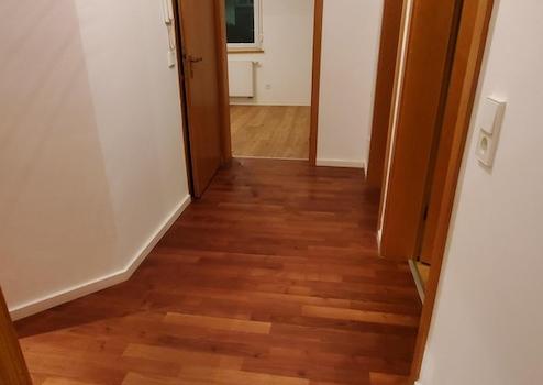 Im Flur ist Parkett ausgelegt.