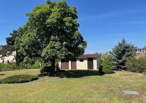 Auf dem Grundstück befindet sich eine Garage mit Werkstatt und ein Nebengelass.