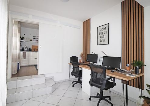 Haus I wurde etwa 1960 erbaut und im Jahr 2013 umfassend modernisiert, während Haus II im Jahr 2000 angebaut wurde. Der ältere Gebäudeteil beherbergt zwei 3-Zimmer-Wohnungen, während das neu angebaute Haus eine komplette Wohneinheit bildet. Die beiden Wohnungen werden durch eine Terrasse sowie einen Balkon ins Freie erweitert, während das Haus über, Garten, Terrasse und Balkon verfügt. Die in Massivbauweise errichteten Häuser sind beide voll unterkellert.