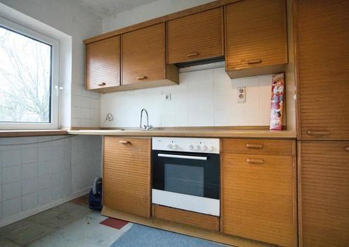 Die praktische Wohnküche im EG auf ca. 7m² bietet Platz für eine Einbauküchenzeile mit diversen Ober-/ und Unterbauschränken, Cerankochfeld und Backofen, Abzugshaube, eine Kühl-/ Gefrierkombination und eine Spüle. Die Einbau-Küche ist etwa 25 Jahre alt. Im Falle eines gestützten Durchbruches ist hier auch die Schaffung einer offenen Wohnküche möglich. Diese Grundrissumgestaltung böte ein neue Raumfläche von ca.29m².