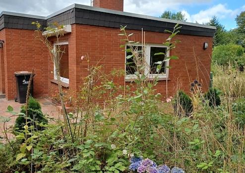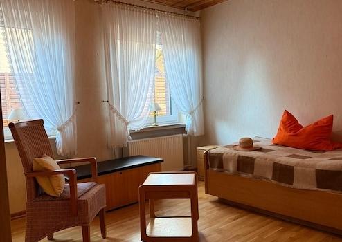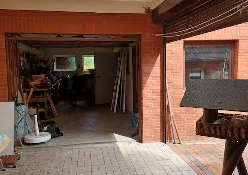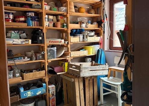 Das Nebengebäude aus dem Jahre 1980 bietet einen weiteren Stellplatz durch eine solide ausgebaute Garage und genügend Lagermöglichkeiten für Werkstatt und Arbeitsgeräte. Zu dem Gebäude gehört ebenfalls ein liebevoll ausgebauter Anbau als angenehmer Rückzugsort mit direktem Weg in den Garten.