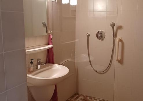 Ebenfalls im Erdgeschoss befinden sich das helle und freundliche Schlafzimmer und ein neu umgebautes Bad mit großer bodengleicher Dusche.