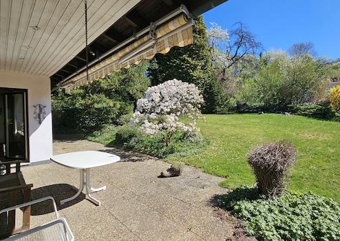 Der Garten ist schön angelegt und ist mit Rasen, schützenden Pflanzen und Baumbestand fast nicht einsehbar.