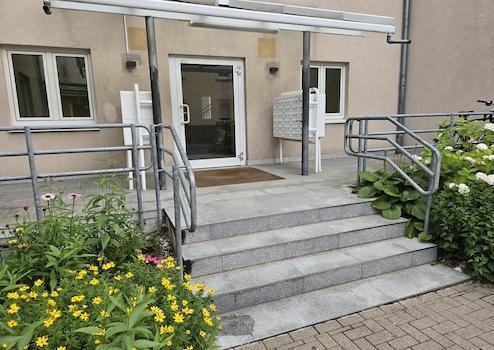 Neben dem Haupteingang gibt es zusätzlich einen barrierefreien Hauszugang.