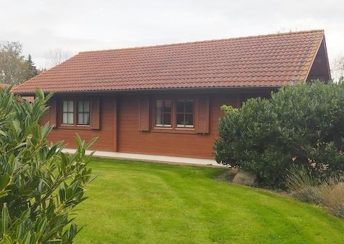 ca. 700 m vom Strand entfernt steht das gepflegte Blockhaus. Nordöstlich gelegen, befindet sich der Leuchtturm Westermarkelsdorf und die Aussichtsplattform "Markelsdorfer Huk". Unweit liegt der größte Strandabschnitt eines Naturschutzgebietes von Schleswig Holstein.