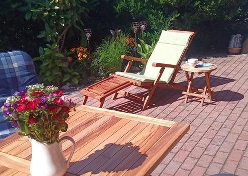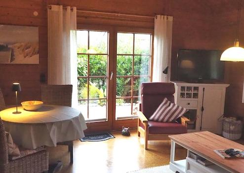 Das Haus mit Süd-Terrasse, ein Carport mit Schuppen für Fahrräder, 374 qm Grundstück, Nfl. 70 qm, Wfl. ca. 65 qm mit 2 voll eingerichteten Schlafräumen, Bad mit Dusche und einem modernen eingerichteten Wohnbereich (neu möbliert im Landhausstil) mit offener Küche (Elektrogeräte von Miele ).