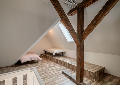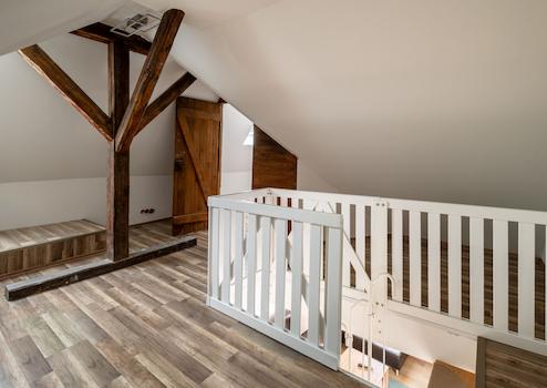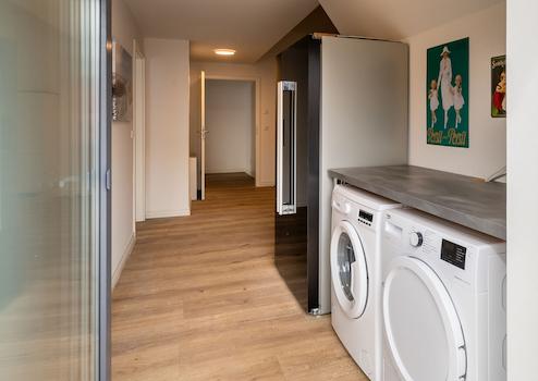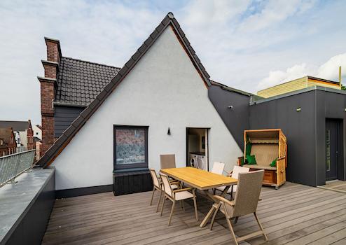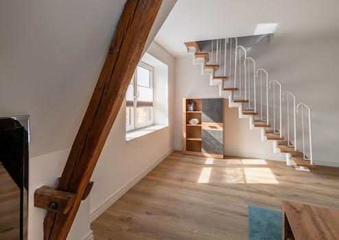 Das um 1930 erbaute Haus, in dem sich diese Eigentumswohnung befindet, wurde 2023 vom jetzigen Eigentümer aufwändig und hochwertig kernsaniert. Die komplett ausgestattete Wohnung (das gesamte Mobiliar, die Küche mit allen Geräten sowie Waschmaschine und Trockner sind im Kaufpreis enthalten!) befindet sich im Dachgeschoss und ist mit einem Personenaufzug erreichbar, sie erstreckt sich über 2 Etagen ( DG + Spitzboden). Der geräumige Koch-Essbereich bildet das Herz der Wohnung, von hier aus führen Türen zum Balkon, zur großen Dachterrasse sowie zum Bad (Dusche, Doppelwaschtisch, WC) und 2 weiteren großen Räumen (Schlafen, Wohnen, Arbeiten...). Die Wohn-/Nutzfläche beträgt rund 109 m² (inkl. der Fläche im Spitzboden). Über eine Treppe in einem der Räume geht es in den ausgebauten Spitzboden, das mit über 21 m² Nutzfläche viele Verwendungsmöglichkeiten bietet. In allen Räumen gibt es Fußbodenheizung, die von einer zentralen Luft-Wasser Wärmepumpe versorgt wird.