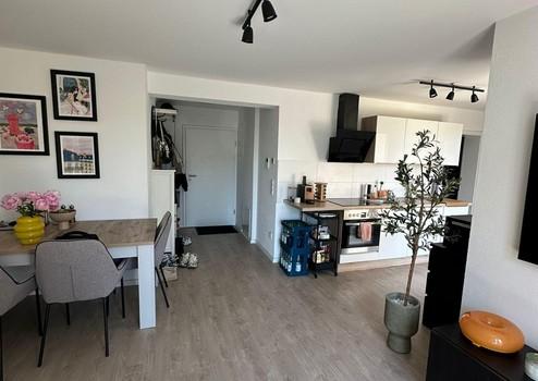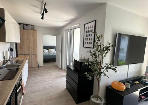 Eine Diele bildet den Empfang und geht in den großzügigen Wohn/Essbereich mit offener Küche über. Die Bodentiefe Fenster mit Glasbrüstung sorgen im Inneren für ein Maximum an natürlichen Licht. Das Highlight der Wohnung ist das Balkon mit Glasgeländer, auf dem es sich wunderbar vom Alltag erholen lässt.