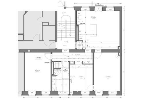 Bei der Wohnung handelt es sich um 2 im Grundbuch getrennte Wohnungseigentume in ähnlicher Größe. Eine Erschließung über jeweils eine Eingangstür ist vom Treppenhaus aus möglich. Zwei Haustüren sind im Bestand vorhanden. Eine Unterteilung der Wohnung in zwei separate Wohneinheiten daher unkompliziert.