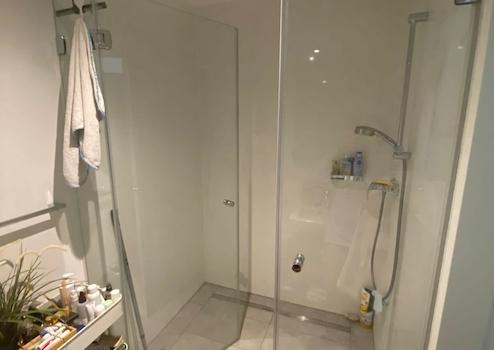 Die große bodentiefe Glasfront sorgt für viel Lichteinfall. Elektrische Aussenrolläden. Absolute Ruhe durch 3-fach Verglasung. Gehobene Badausstattung mit großformatigen Keramikbodenfließen, elegantem Waschtisch, inkl. modernen Kristallspiegel mit eingebauten Oberlicht, sowie großer bodenebener moderner Dusche mit Echtglasabtrennung.