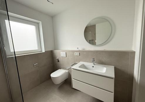 Diese hochwertige Neubauwohnung aus dem Jahr 2025 bietet auf ca. 80 m² Wohnfläche modernen Wohnkomfort. Sie verfügt über zwei Schlafzimmer, eine großzügige Wohnküche sowie eine große Abstellkammer. Das Badezimmer ist mit einer begehbaren Dusche ausgestattet und verfügt über Fußbodenheizung. In jedem Zimmer gibt es einen eigenen Regler, sodass die Fußbodenheizung individuell gesteuert werden kann. Im Badezimmer gibt es zusätzlich eine spezielle Fernbedienung, mit der die gesamte Heizfunktion komfortabel eingestellt werden kann. Der integrierte Spiegel im Bad bietet Beleuchtung und eine Entnebelungsfunktion – selbst bei Dampf wird er auf Knopfdruck wieder klar.
