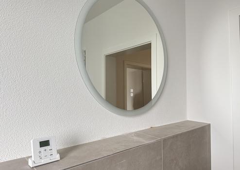 - Integrierter Badspiegel mit Beleuchtung und Entnebelungsfunktion