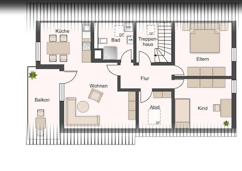 Wohnfläche: ca. 92m² (Dachschrägen schon abgerechnet)