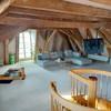 Über die Wendeltreppe gelangt man ins zweite Obergeschoss mit der freiliegenden Dachbalken-Konstruktion und dem Teppichboden aus Schurwolle. Dort befindet sich