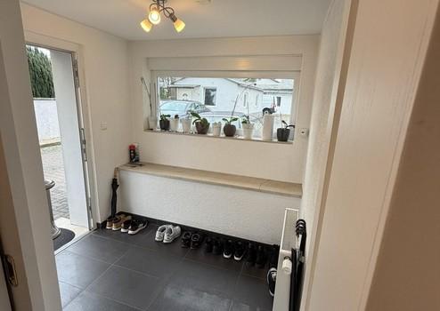 Das Erdgeschoss überzeugt durch einen großzügigen Wohnbereich mit Kaminanschluss, der den zentralen Treffpunkt des Hauses bildet. Große Fenster sorgen für eine freundliche, lichtdurchflutete Atmosphäre. Die hochwertige Miele-Einbauküche mit modernen Elektrogeräten, der offene Essbereich sowie ein vielseitig nutzbares Gästezimmer – ideal auch als Büro – schaffen ein komfortables Wohnumfeld. Ein bodengleiches, hochwertig ausgestattetes Duschbad, ein separates Gäste-WC sowie der praktisch gelegene Hauswirtschafts- und Technikraum auf Terrassenebene runden diese Etage ab. Vom Wohn- und Essbereich gelangen Sie direkt in den liebevoll angelegten Garten mit idealer Südwest-Ausrichtung, der reichlich Platz für Erholung, Familienaktivitäten und gemütliche Stunden im Freien bietet.