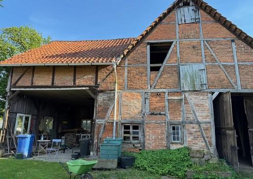 •Aktueller Zustand: stromlos (Hauptanschluss in Scheune verlegt), stark sanierungsbedürftig, aber mit vollständiger Entwurfsplanung und bereits genehmigtem denkmalrechtlichem Konzept