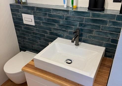 •Handgemalter Fliesenspiegel in Küche, Neue EBK mit Backofen, Induktionsfeld und Kühlschrank