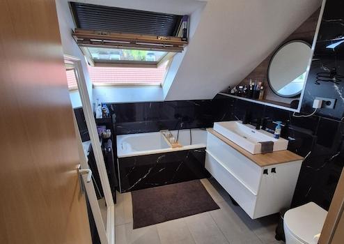 - 5 Zimmer, 2 Bäder, 1 Hauswirtschaftsraum, kellerähnlicher Raum