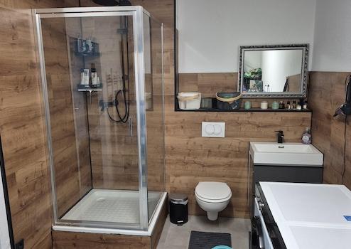 Terrasse, Garten, Vollbad, Duschbad, Laminat, Fliesen