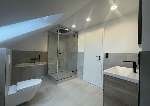 - Moderne Badausstattung mit Großformatfliesen und Armaturen von Hans-Grohe