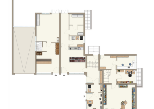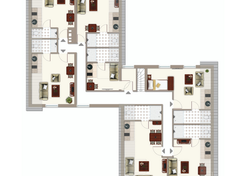 Sie verteilt sich im Erdgeschoss auf vier Gewerbeeinheiten, im 1. Obergeschoss auf drei Wohnungen sowie im Dachgeschoss auf sieben Apartments.