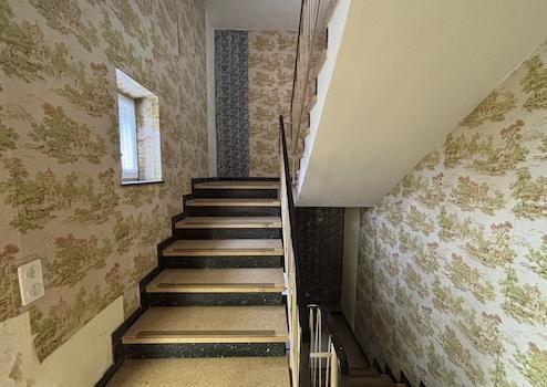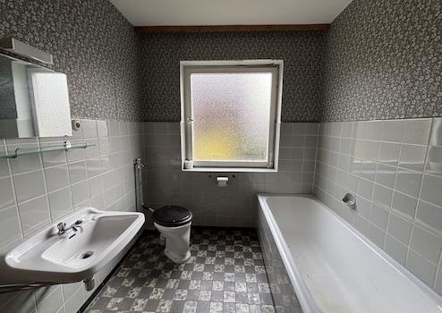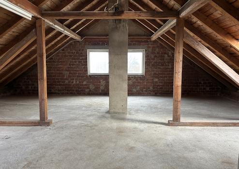 Das Haus verfügt über zwei funktionale Badezimmer, die mit klassischen Fliesen ausgestattet sind. Der Dachboden bietet zusätzliches Potenzial zur individuellen Nutzung oder Ausbau.