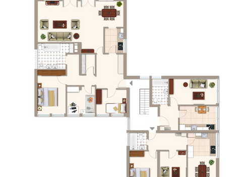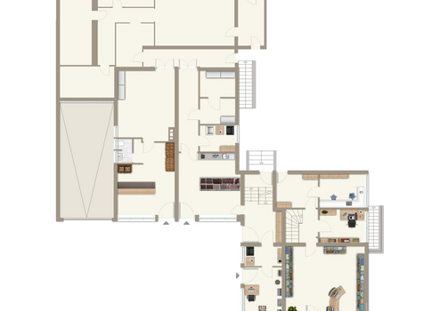 Sie verteilt sich im Erdgeschoss auf vier Gewerbeeinheiten, im 1. Obergeschoss auf drei Wohnungen sowie im Dachgeschoss auf sieben Apartments.