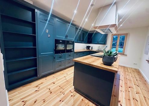 Ein besonderes Highlight ist die im Haus verbleibende Einbauküche, die mit viel Liebe zum Detail geplant und umgesetzt wurde. Sie überzeugt durch ihre Großzügigkeit, hochwertige Ausstattung und ein durchdachtes Raumkonzept. Diese Küche vereint Funktionalität und Design auf hohem Niveau – ein Ort, an dem Wohnen und Genießen harmonisch zusammenkommen.