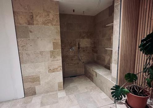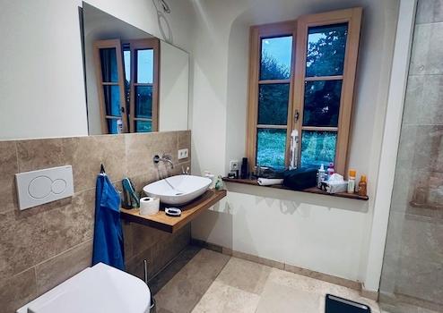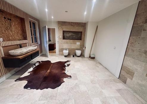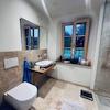 o Natursteinböden in Bad & HWR, beheizbare Spiegel, TV-Anschluss im Bad