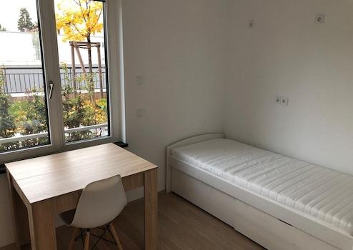 Dieses ausgesprochen schöne und helle Zimmer befindet sich im Erdgeschoss eines 2020 erbauten Neubaus mit insgesamt nur vier Bewohnern. Besonders hervorzuheben ist die Lage in einem ruhigen familiären Wohnviertel welche aber trotzdem sehr zentral liegt