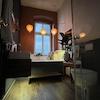 Das Bad wurde ebenfalls 2013 renoviert und mit hochwertigen Badmöbeln, Fliesen und Armaturen ausgestattet, besondere Highlights sind die Fussbodenheizung und die Hansgrohe Regendusche.