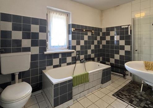 Das Tageslichtbadezimmer im Erdgeschoss wurde mit einer Dusche und Badewanne ausgestattet. Das Tageslichtbadezimmer im Dachgeschoss verfügt über eine Dusche.