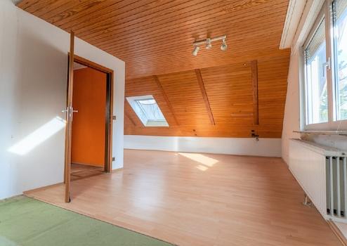 Im Dachgeschoss stehen zwei großzügige Schlafzimmer zur Verfügung, die sich flexibel nutzen lassen und viel Platz für individuelle Wohnideen bieten. Ein weiteres Tageslichtbad mit Badewanne komplettiert diese Ebene und macht das Haus besonders familienfreundlich.