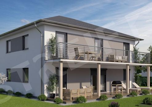 Das zweigeschossige Mehrfamilienhaus mit zwei Wohnungen überzeugt mit einer klassisch eleganten Architektur mit Walmdach und zwei behaglichen Terrassen. Der Hausentwurf kann mit Stahlbalkonen an der Gartenseite ...