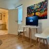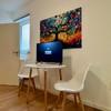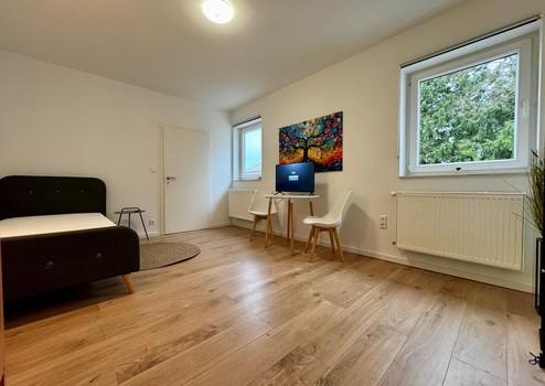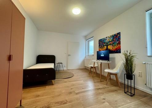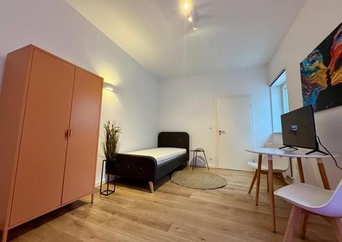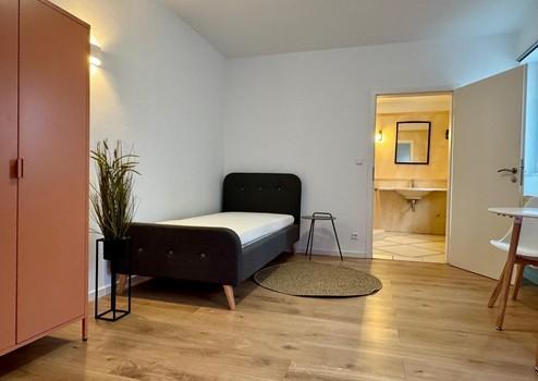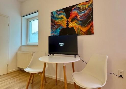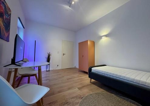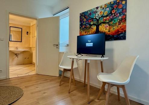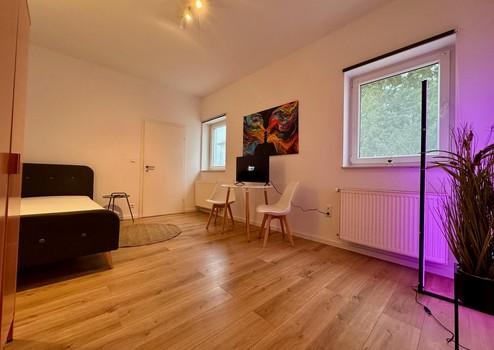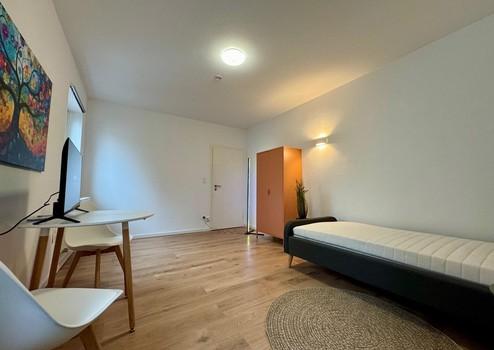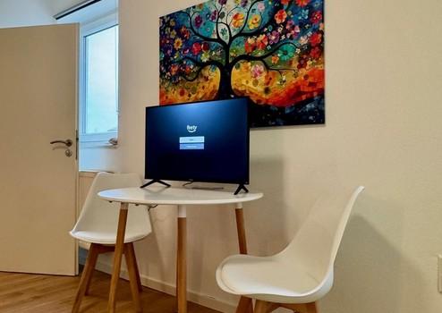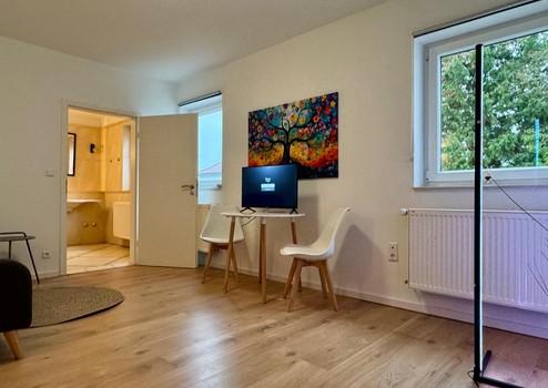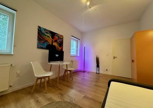 Vollmöbliert: Bett, Kleiderschrank, Esstisch mit Stühlen, TV